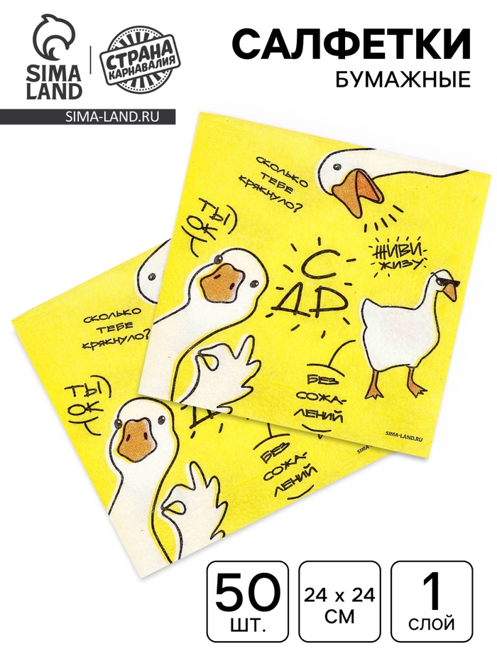 Салфетки бумажные однослойные «Гуси», 24×24 см, 50 шт.