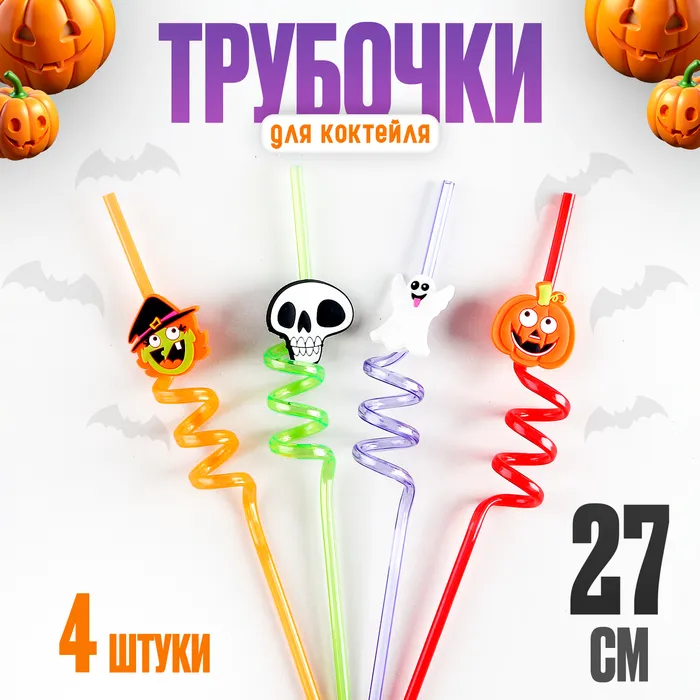 Трубочки для коктейля «Монстрики», в наборе 4 штуки