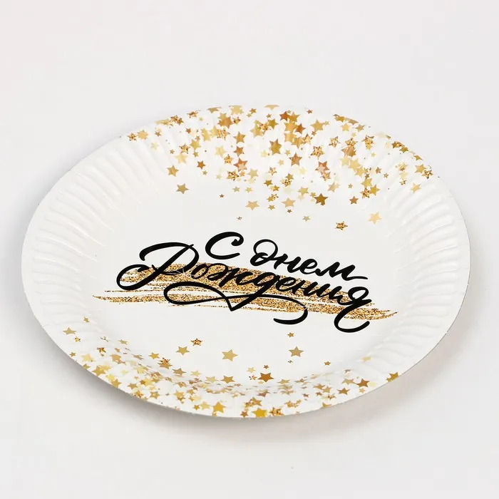 Тарелка одноразовая бумажная «С днём рождения», 18 см, набор 6 шт.