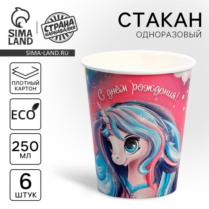 Стакан одноразовый бумажный «Единорог» 250 мл. набор 6 штук