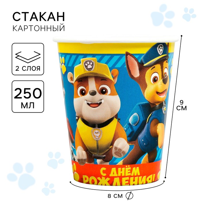 Стакан одноразовый бумажный «С Днем Рождения!», 250мл, Щенячий патруль