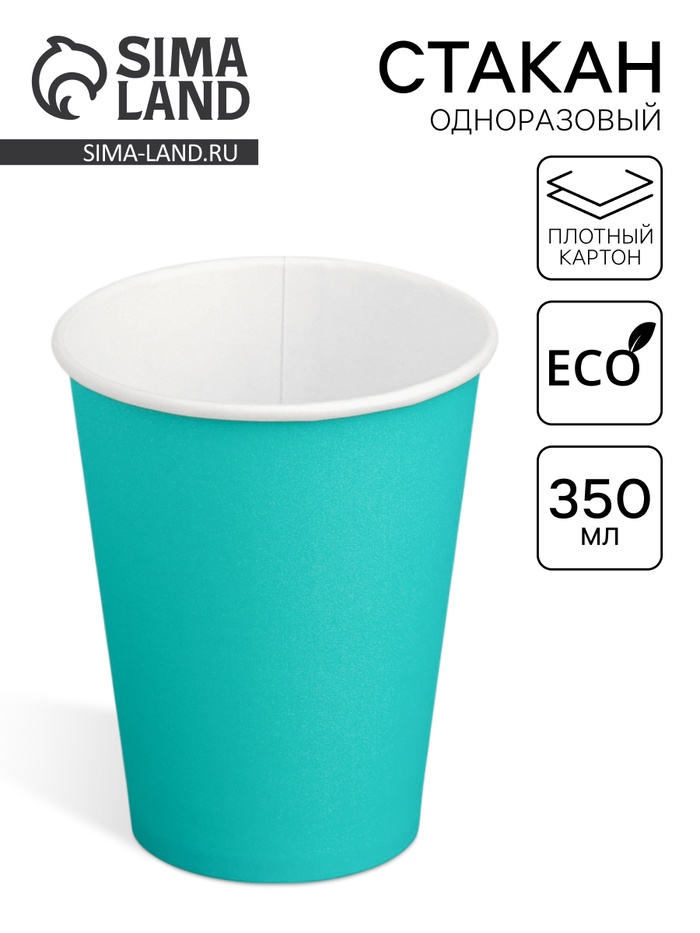 Стакан одноразовый бумажный «Бирюзовый» 350 мл, диаметр 90 мм