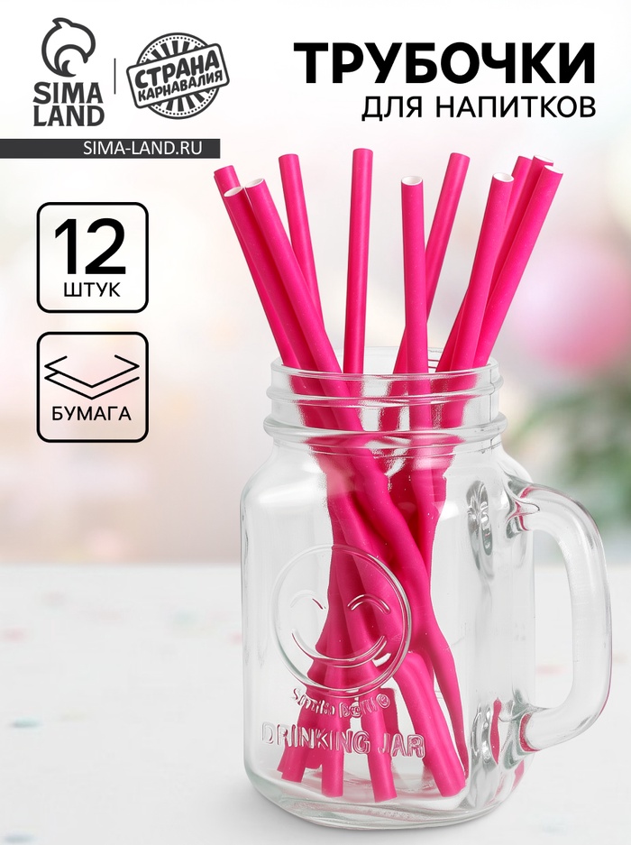 Трубочки для коктейля, набор 12 шт., ярко-розовая