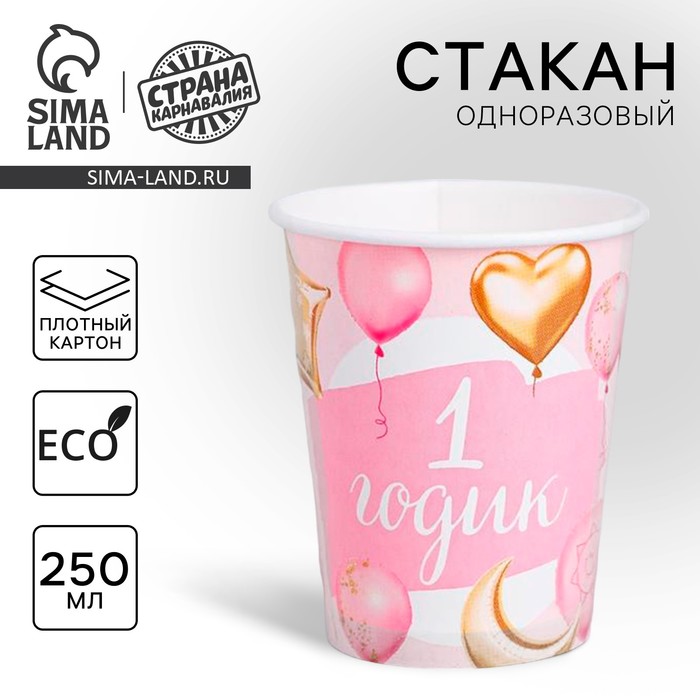 Стакан одноразовый бумажный «1 годик Малышка», 250 мл.