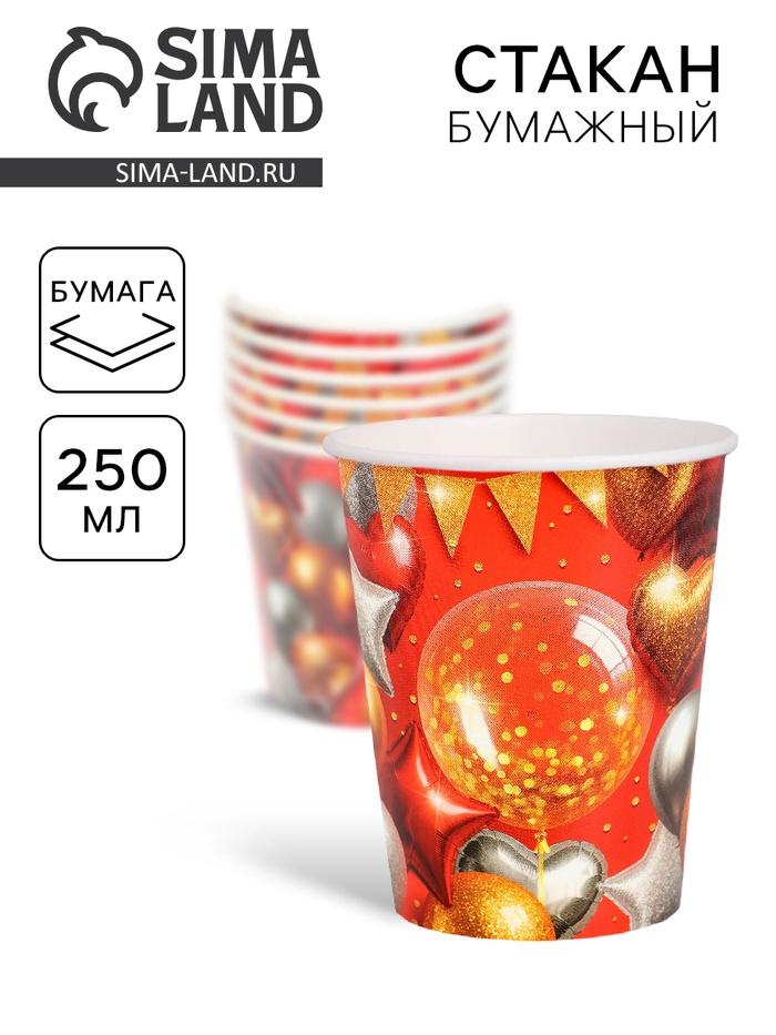 Стакан одноразовый бумажный «Воздушные шары», красный 250 мл