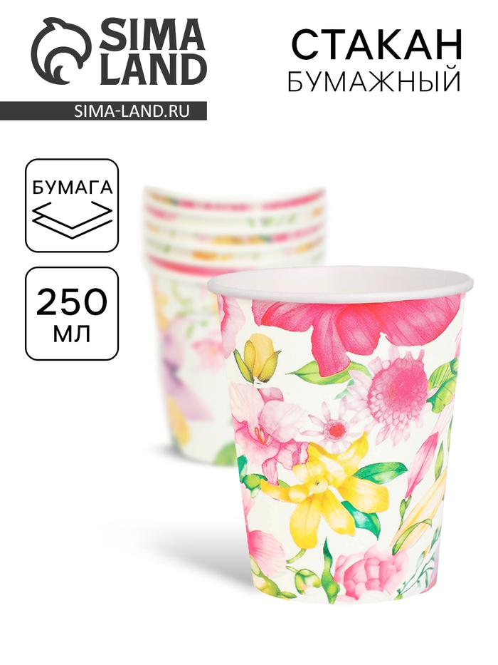Стакан одноразовый бумажный «Акварельные цветы», 250 мл