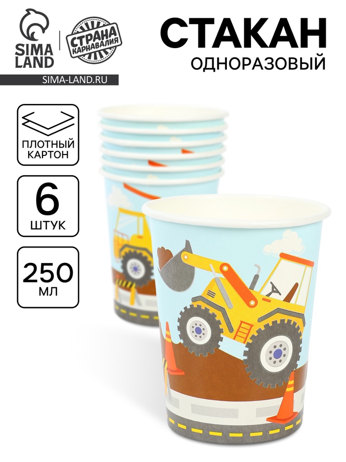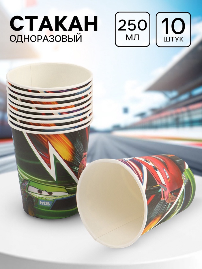 Стакан одноразовый 250 мл, набор 10 шт., Тачки