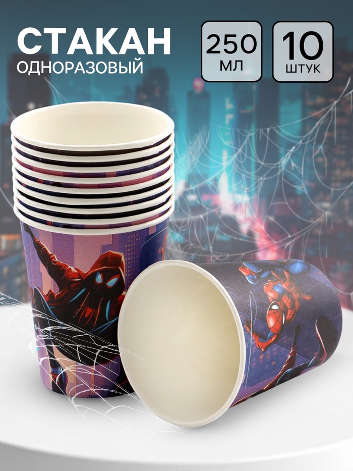 Стакан одноразовый 250 мл, набор 10 шт., Человек Паук