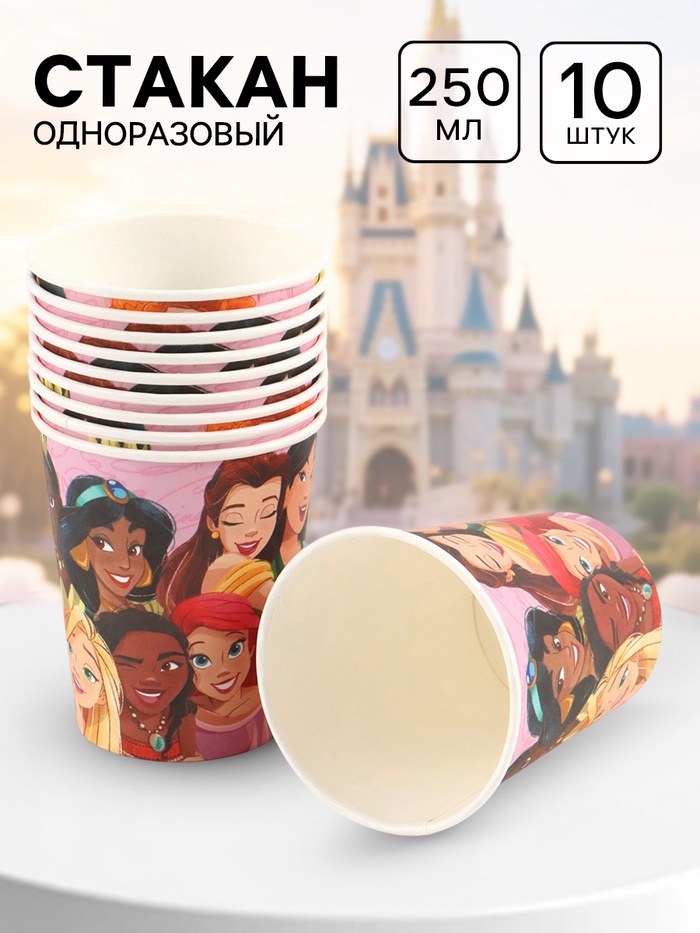 Стакан одноразовый 250 мл, набор 10 шт., Принцессы Дисней