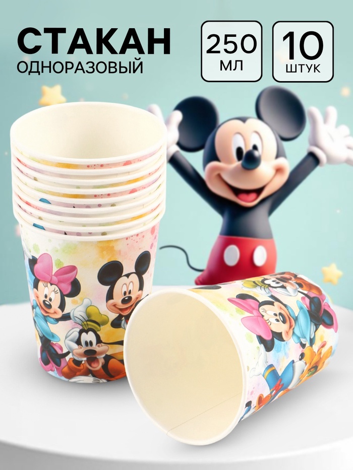 Стакан одноразовый 250 мл, набор 10 шт., Микки Маус и друзья