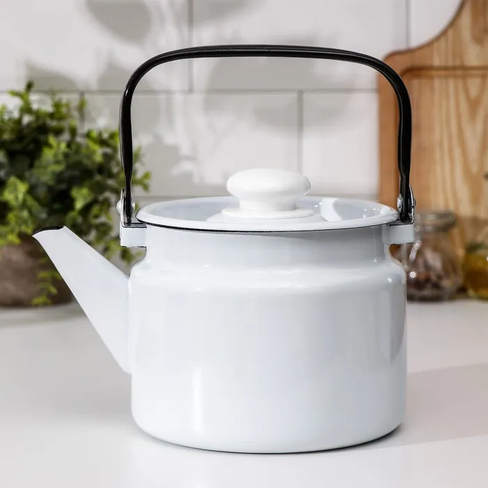 Чайник эмалированный, 3,5 л, без деколи, цвет бежевый