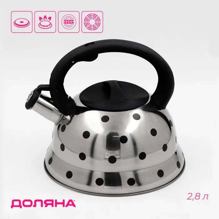 Чайник со свистком Доляна «Горошек», 2.8 л, нержавеющая сталь, хромированный