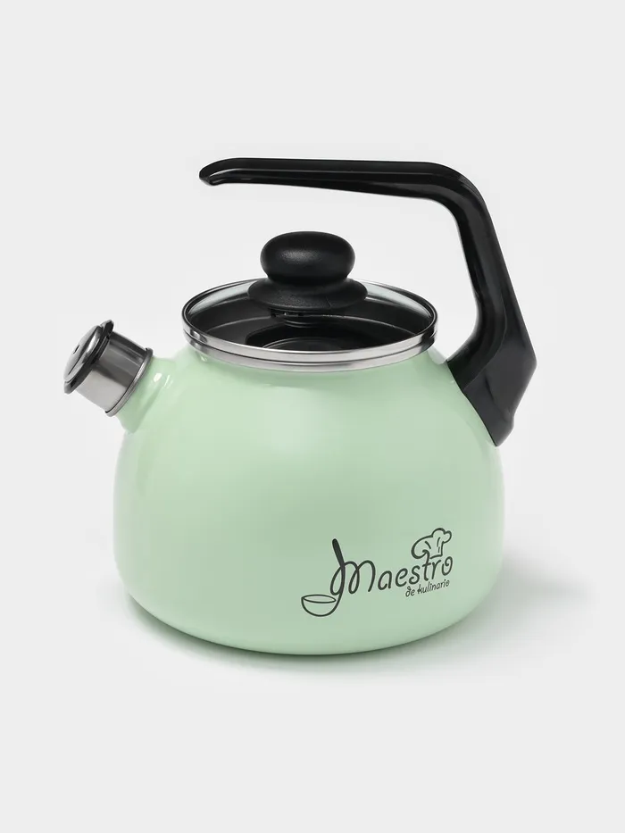 Чайник Maestro, 3 л, со свистком, индукция, эмалированная сталь, светло-салатовый