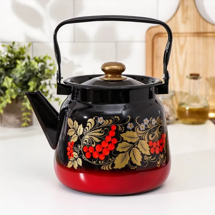 Чайник эмалированный «Рябинка», 3,5 л, цвет красно-чёрный МИКС