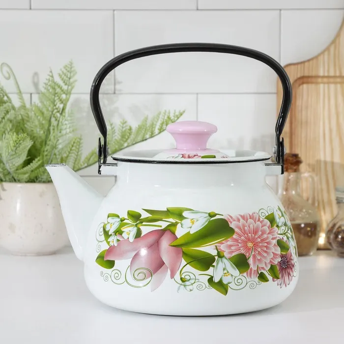 Чайник, 3 л, эмалированная сталь, рисунок МИКС, белый