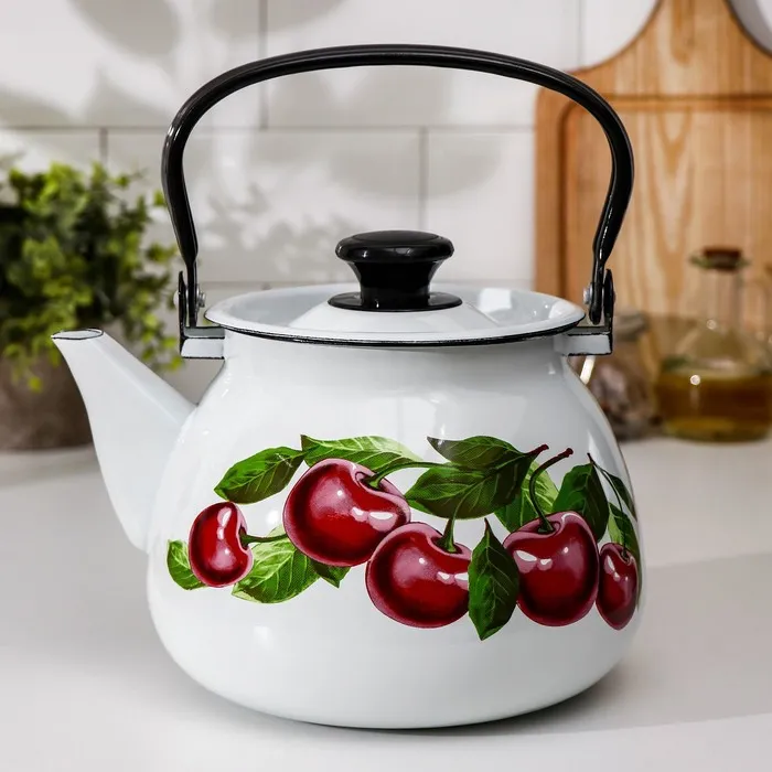 Чайник «Вишневый сад», 3.5 л, индукция, эмалированная сталь, белый