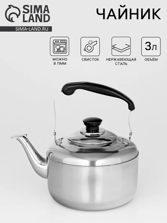 Чайник, 3 л, фиксированная ручка, нержавеющая сталь