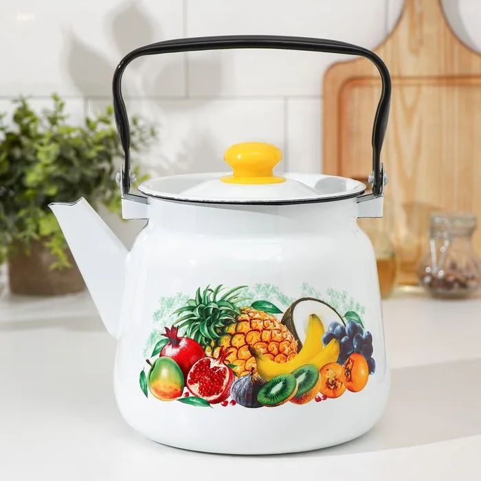 Чайник, 3.5 л, эмалированная сталь, деколь МИКС, коричневый
