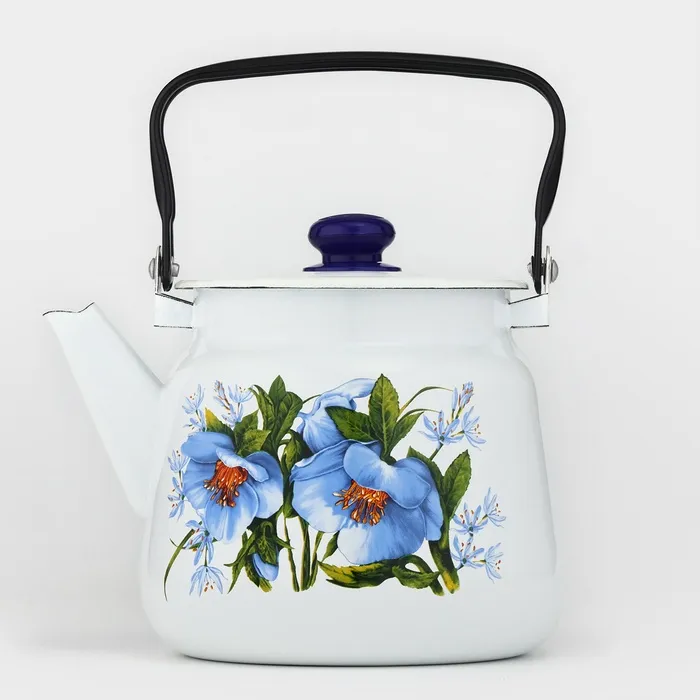 Чайник «Цветы синие», 3.5 л, эмалированная сталь, белый