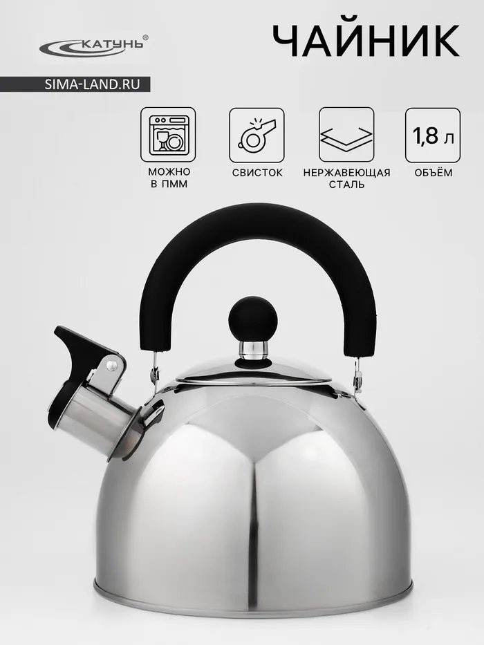 Чайник, 1.8 л, со свистком, капсульное дно, индукция, нержавеющая сталь