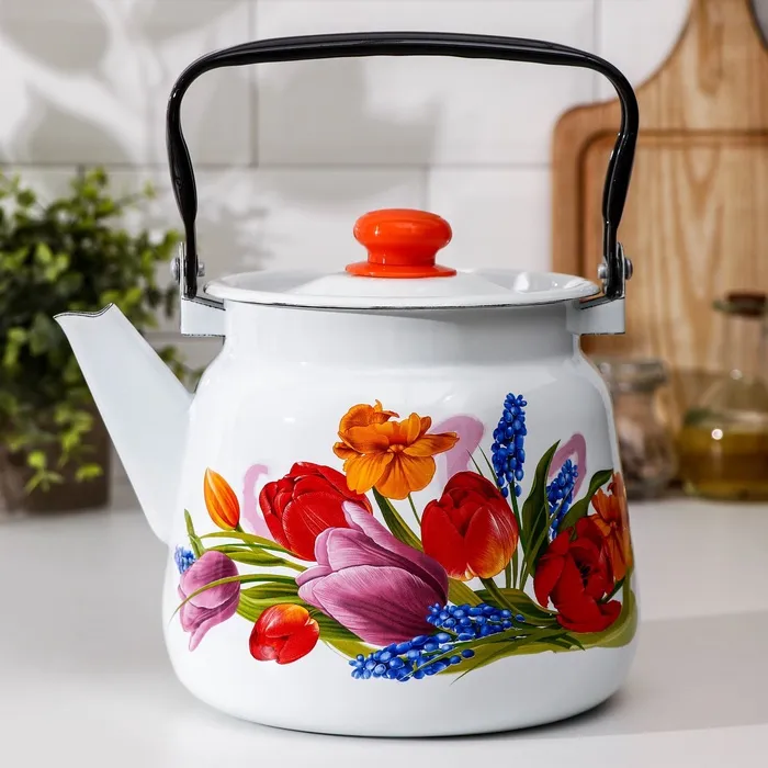 Чайник «Тюльпан Май», 3.5 л, эмалированная сталь, белый