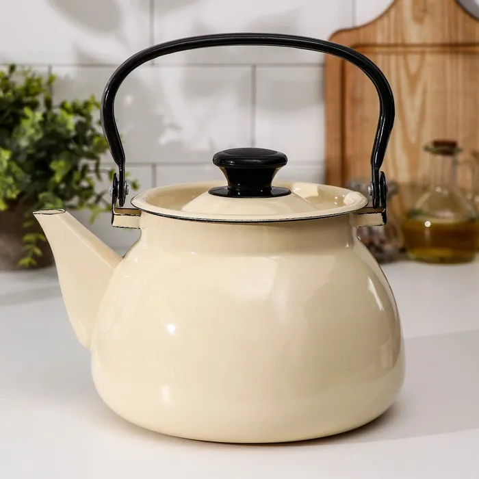 Чайник, 3 л, эмалированная сталь, слоновая кость
