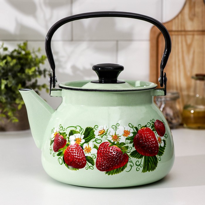 Чайник, 3 л, эмалированная сталь, рисунок МИКС, салатовый