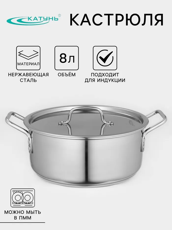 Кастрюля Катунь «Общепит», 8 л, d=30 см, h=12 см, капсульное дно, индукция, нержавеющая сталь
