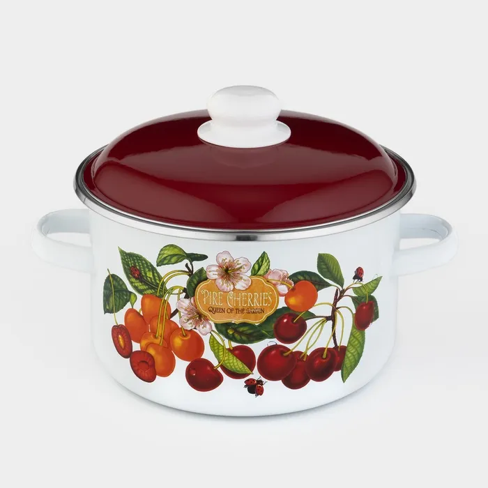 Кастрюля эмалированная «Черешня», 4 л, индукция, цвет белый