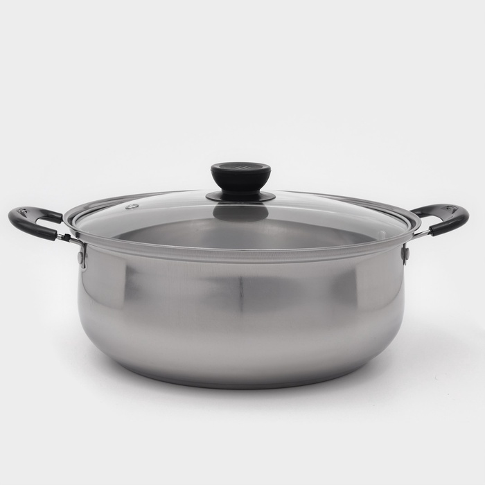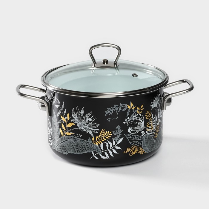 Кастрюля эмалированная Magia, 4 л, d=22 см, стеклянная крышка, индукция, чёрная