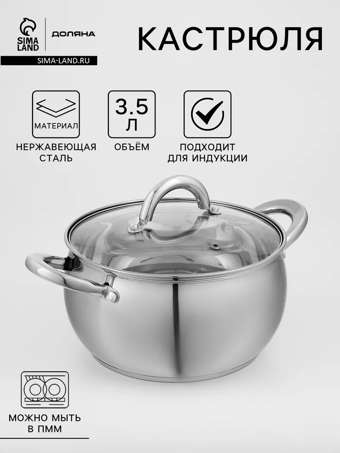 Кастрюля Доляна «Гиперион», 3.5 л, d=20 см, с крышкой, капсульное дно, нержавеющая сталь, индукция