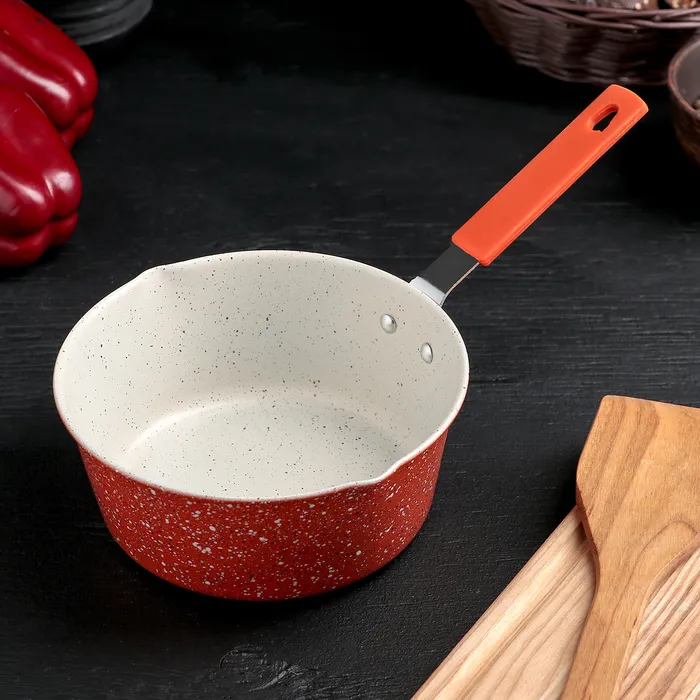 Ковш «Мрамор светлый», 450 мл, силиконовая ручка, антипригарное покрытие, МИКС