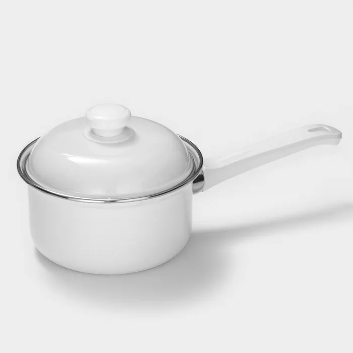 Ковш эмалированный цилиндрический, 1 л, без деколи, индукция, цвет белый