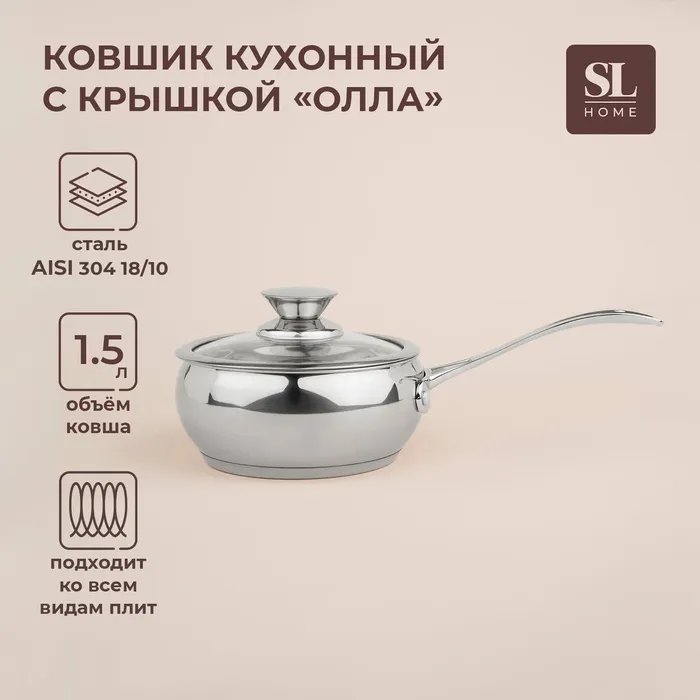 Ковш SL Home «Олла», 1.5 л, d=16 см, h=7.5 см, с крышкой, индукция, нержавеющая сталь