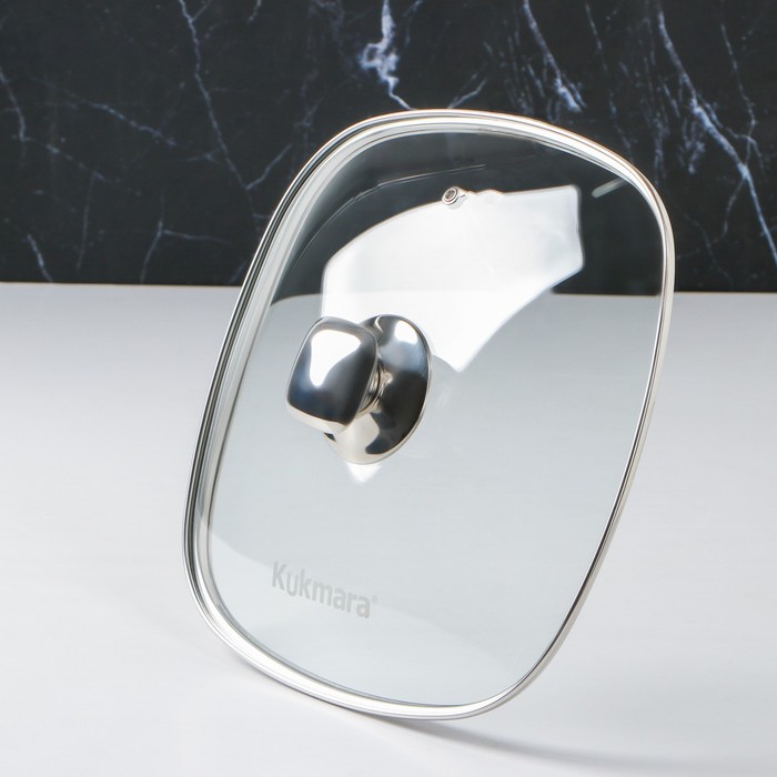 Крышка для сковороды и кастрюли стеклянная, квадратная, 26 см, с ободом и ручкой из нержавеющей стали