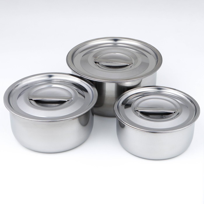 Набор мисок из нержавеющей стали с крышками 3 шт.: 0.75 л, 1 л, 1.45 л, d=15 см, d=16.5 см, 18.5 см