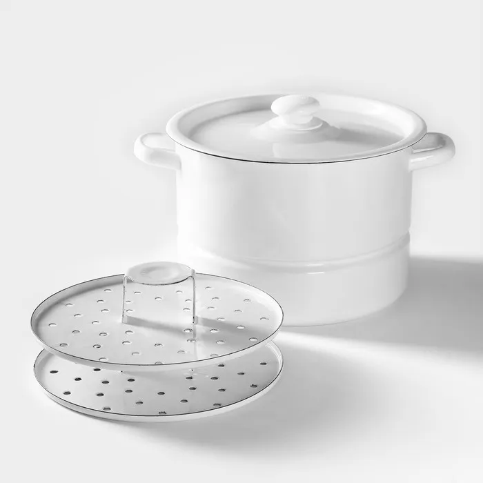 Мантоварка - позница эмалированная, 7,5 л, 2 вставки, цилиндрическая, цвет белый