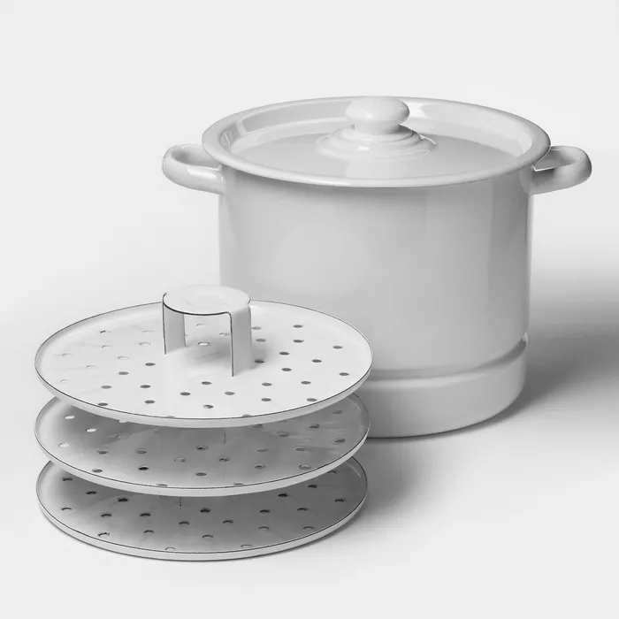 Мантоварка - позница эмалированная, 9 л, 3 вставки, цилиндрическая, цвет белый