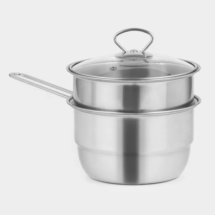 Пароварка-яйцеварка из нержавеющей стали «Вейлер», 18×22 см, стеклянная крышка, цвет хромированный