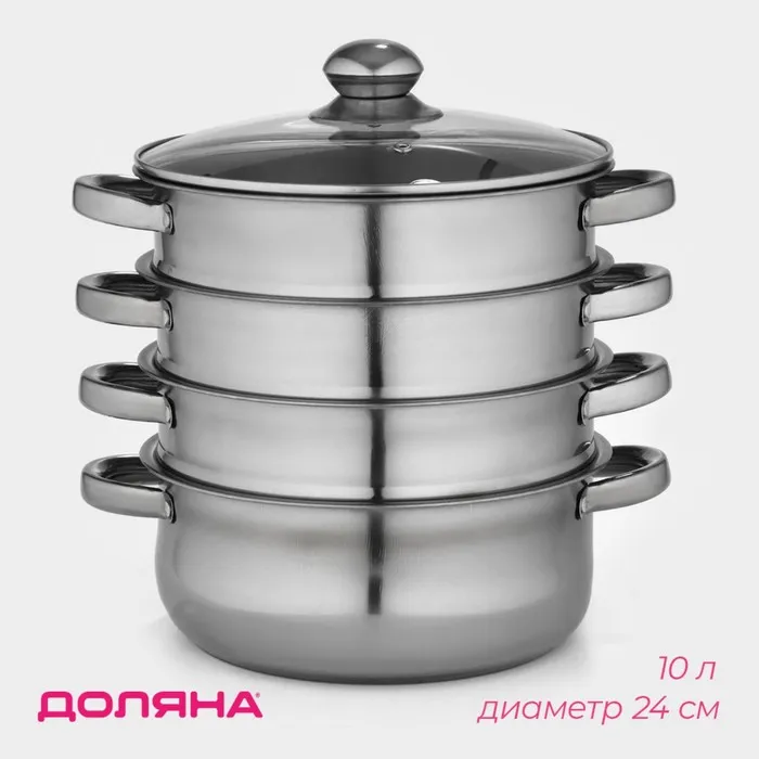 Мантоварка-пароварка Доляна «Классика», d=24 см, 4 уровня (нижний уровень 3.6 л), нержавеющая сталь, индукция