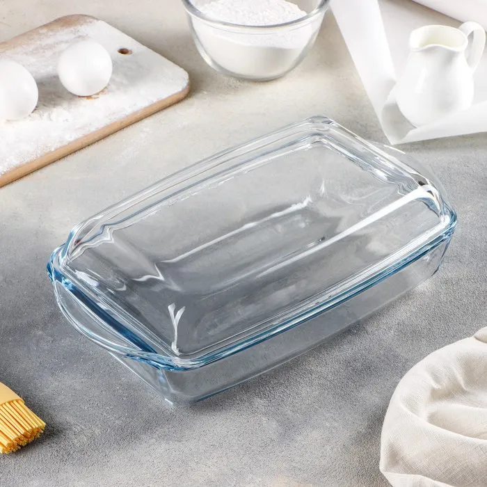 Форма для запекания Paşabahçe Borcam, 1.3/0.9 л, 28.6×16×5 см, с крышкой, прямоугольная, жаропрочное стекло, прозрачная