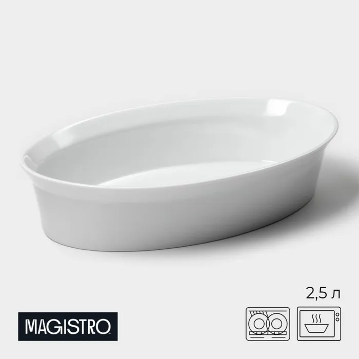 Форма для выпечки Magistro White gloss, 2.5 л, 34×22×6.5 см, жаропрочный фарфор, белая