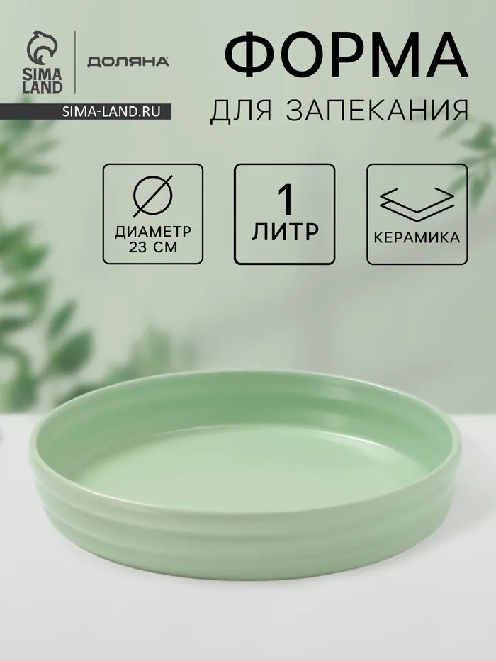 Форма для запекания Доляна «Зефир», 1 л, d=23 см, керамика, круглая, зелёная