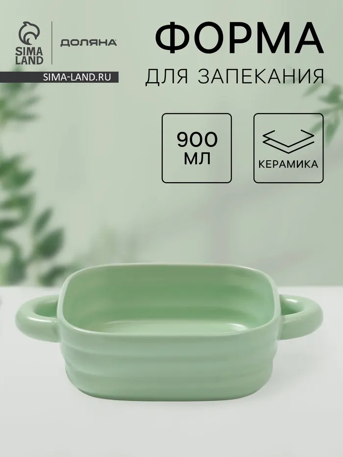 Форма для запекания Доляна «Зефир», 900 мл, 18×18 см, квадратная, керамика, зелёная