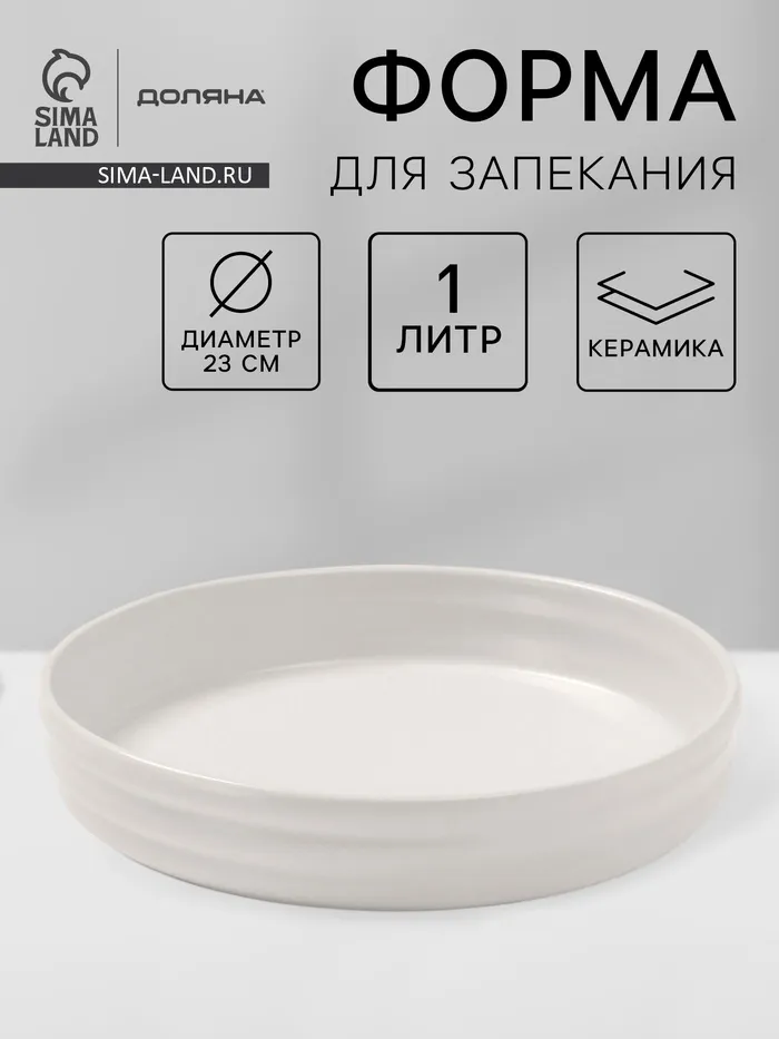 Форма для запекания Доляна «Зефир», 1 л, d=23 см, круглая, керамика, белая