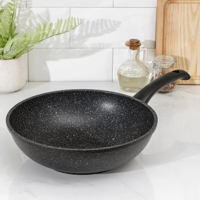 Сковорода - вок Доляна «Элит», d=28 см, антипригарное покрытие, литой алюминий, чёрная