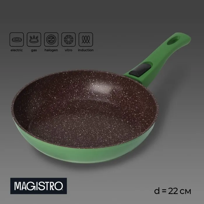 Сковорода Magistro Avocado, d=22 см, кованый алюминий, съёмная ручка soft-touch, антипригарное покрытие, индукция, зелёная
