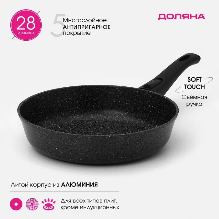 Сковорода Доляна «Элит», d=28 см, съёмная ручка, антипригарное покрытие