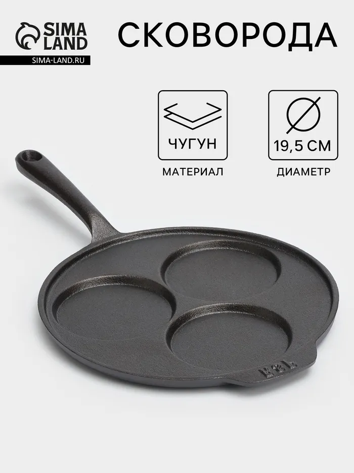 Сковорода-оладница, d=19.5 см, чугун, индукция, чёрная