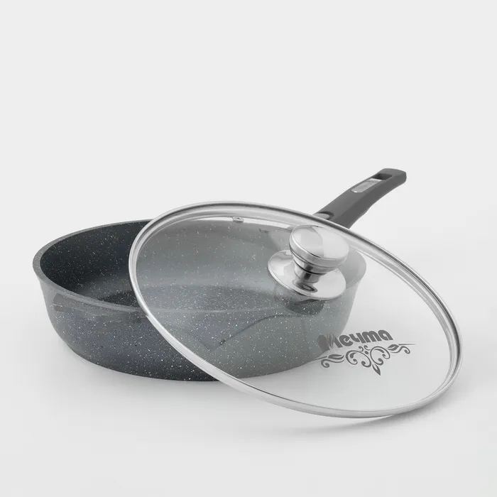 Сковорода Мечта «Гранит», d=28 см, стеклянная крышка, съёмная ручка, антипригарное покрытие, литой алюминий, серая